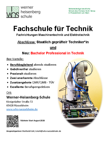 An der Werner-Heisenberg-Schule kann die Weiterbildung in Teilzeit in zwei Fachrichtungen absolviert werden: