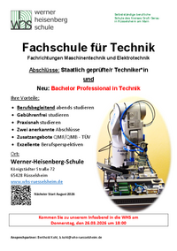 Unter den Bildungschancen finden Sie Übersichten der für Sie relevanten Aus- und Weiterbildungsmöglichkeiten an der Werner-Heisenberg-Schule in Rüsselsheim abhängig von Ihrem gegenwärtigen Schulabschluss.