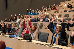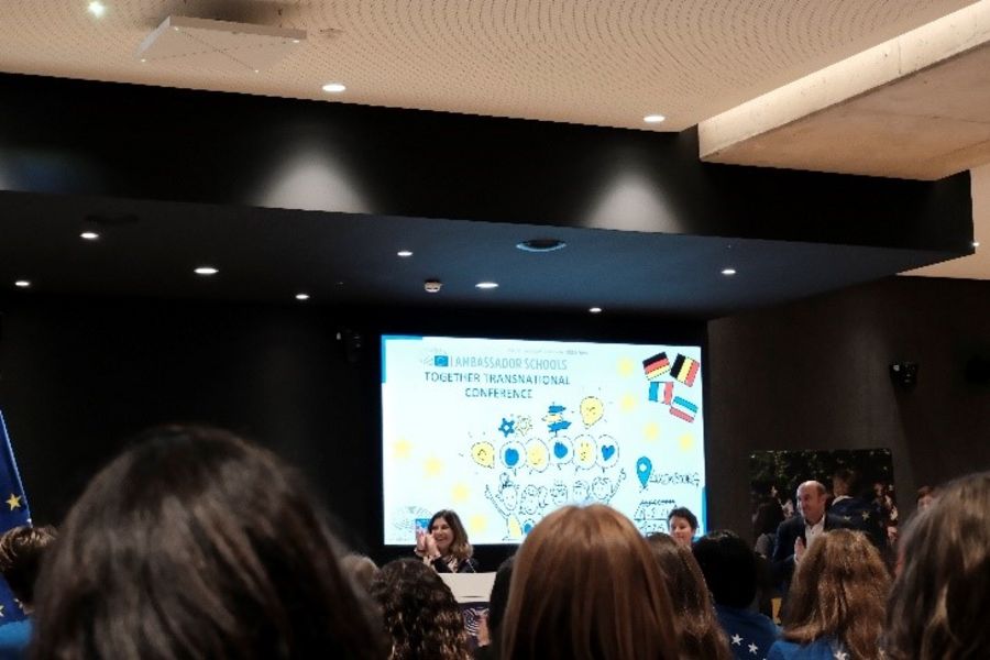 Am Freitag hieß es dann Koffer packen und auschecken. Doch bevor wir die Heimreise antraten, folgte ein weiteres Highlight, die Diskussion mit Mitgliedern des Europäischen Parlaments. Katarina Barley aus Deutschland, Fabienne Keller aus Frankreich und Tilly Metz aus Luxemburg stellten sich den Fragen der Konferenzteilnehmer. Themen waren z.B. Klimaschutz, Fake News und Desinformation und die europäische Migrationspolitik. Zum Abschluss der Veranstaltung wurde es feierlich, als die Europahymne gespielt wurde und bei den Abschlussfotos war die Begeisterung aller über die mehr als gelungene Konferenz deutlich zu spüren.